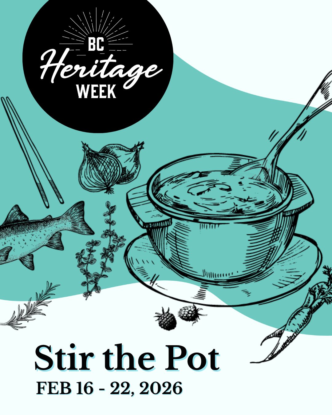 BC Heritage week is a province-wide celebration held each year during the third week of February. The week is an open invitation for British Columbians to share stories and experience heritage in their communities. Each year, a new theme is chosen to spark creativity and guide events across the province. The theme for 2026: Stir The Pot.